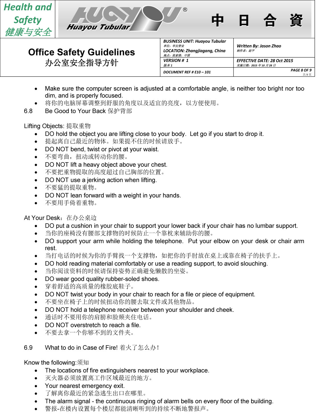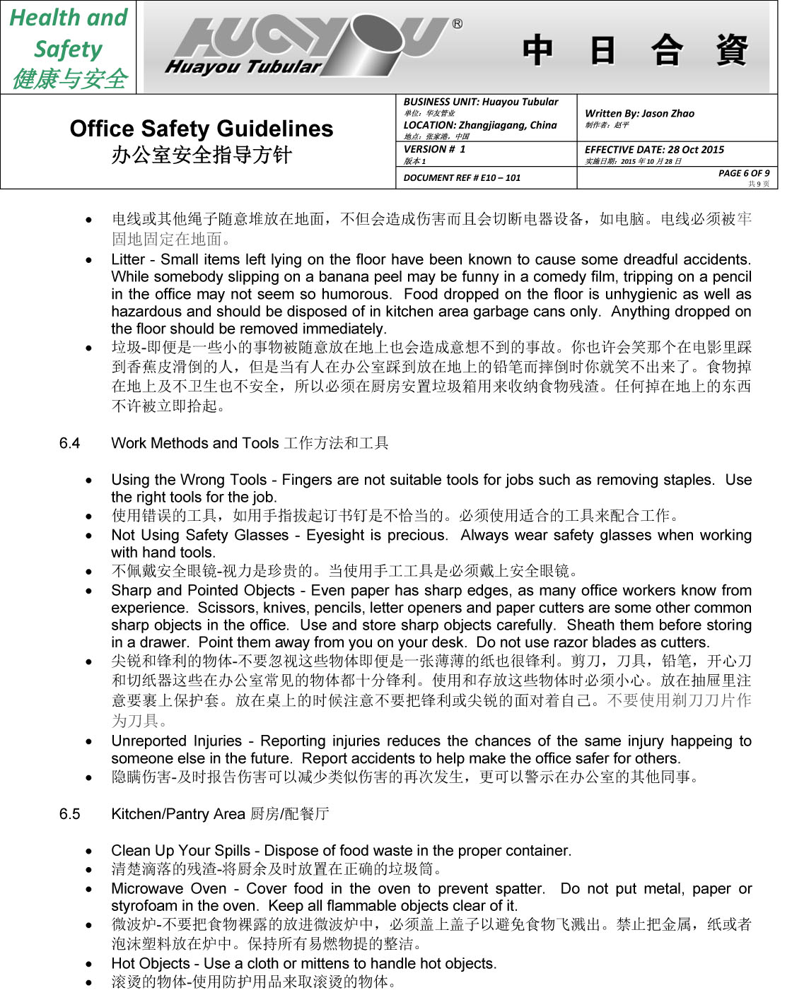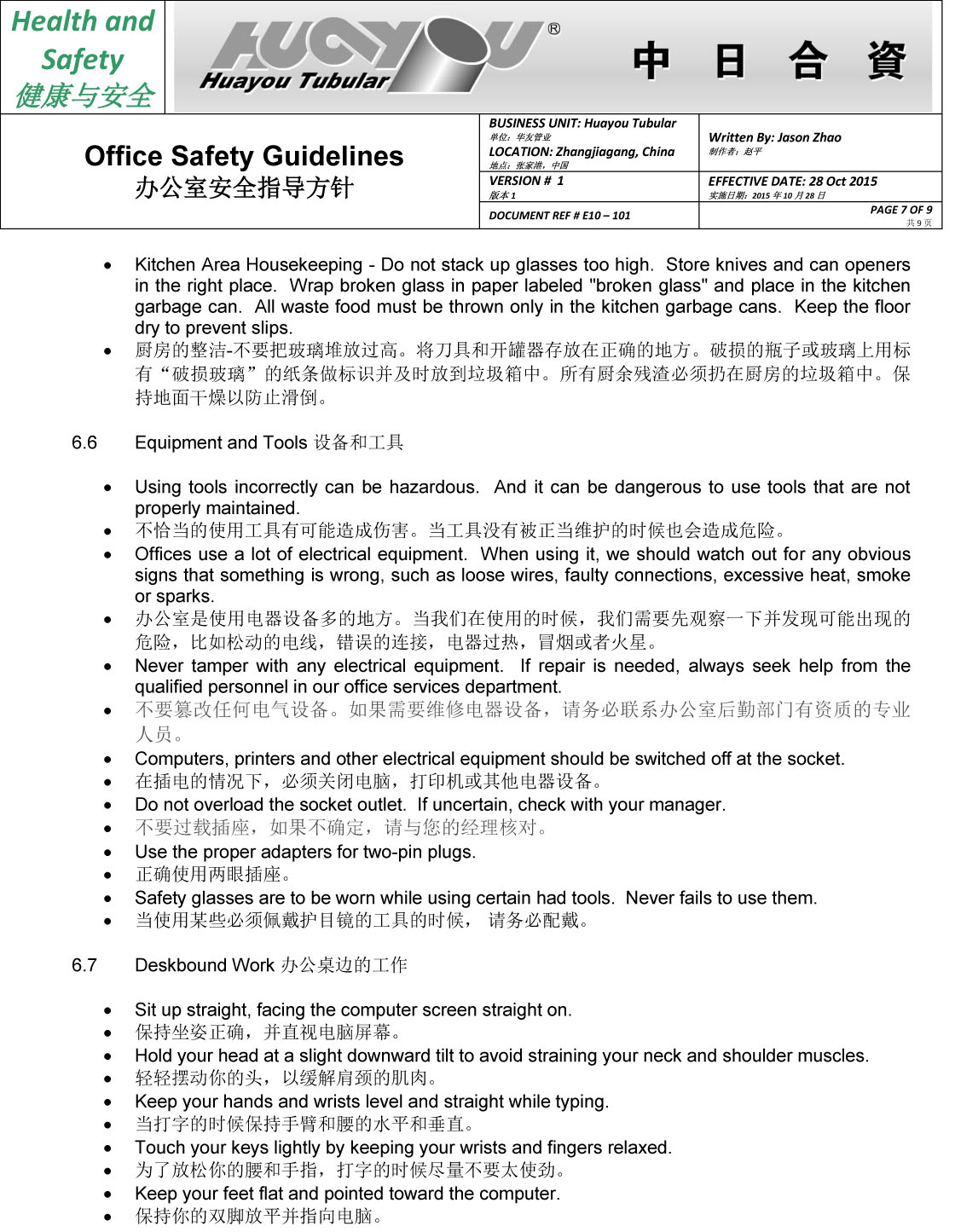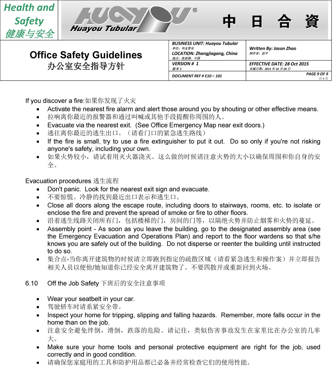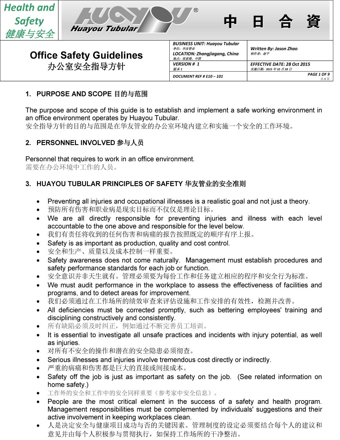 華友辦公室安全指導(dǎo)方針