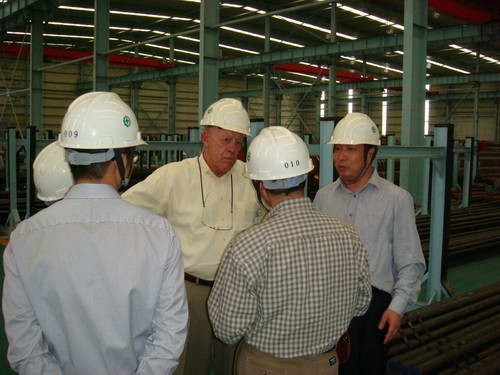 8月29日 住商鋼管株式會社常務執行董事守口茂來公司考察指導,隨行來訪的人員還有住商鋼管(無錫)有限公司總經理小林博紀、營業主任萬里、上海住友商事副總經理費 偉民、金屬第四部科長張艷。公司總經理陳玉琪、總經理助理龜甲健、陳平、辦公室主任趙平接待了守口常務一行...